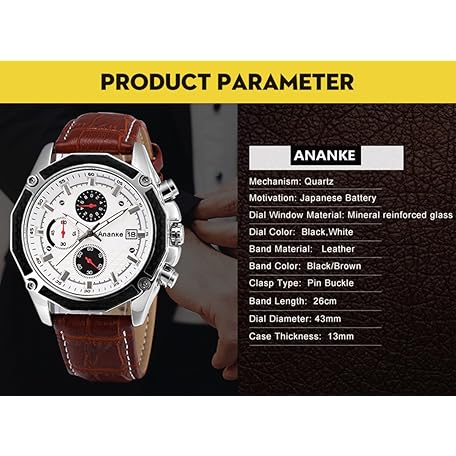 Thương hiệu Ananke là cái tên nổi tiếng được rất nhiều khách hàng trên thế giới chọn lựa. Với kiểu dáng đẹp mắt, sang trọng, sản phẩm Men's Business Waterproof Watch Quartz Analog Black/Brown Leather Strap Chronograph Calendar Watch + Free Watch Box (Tan) là sự lựa chọn hoàn hảo nếu bạn đang tìm mua một món cho riêng mình.