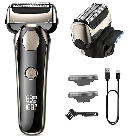 Men's Electric Beard Razor, Electric Shaver, 2025 New & 2 Speed Speeds, 3 Blades, Reciprocating Type, Deep Shaving, IPX6 Waterproof, Wet & Dry Use, Can Shave in Bath, Type C Rapid Charging