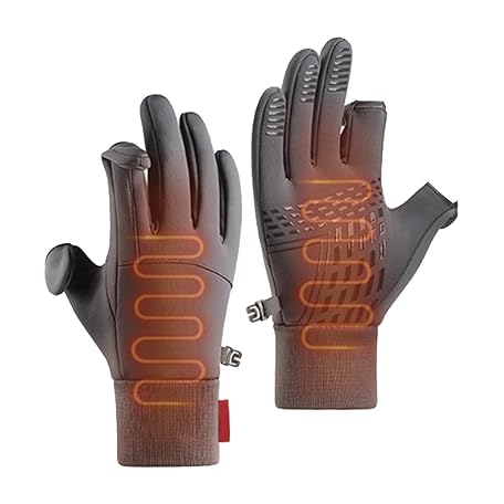 Men's Winter Gloves, Cycling Gloves | Windproof Gloves with Cut Two Fingers, Running Gear, Thermal Gloves, For Commuting to Work or Fishing, Fleece Lined Gloves
