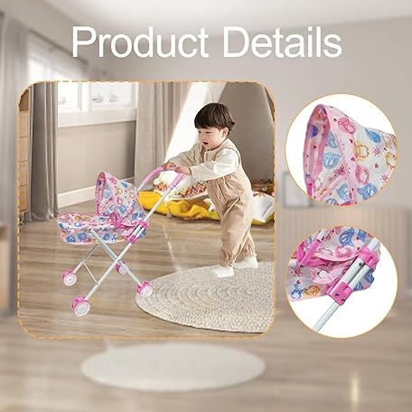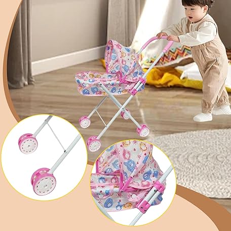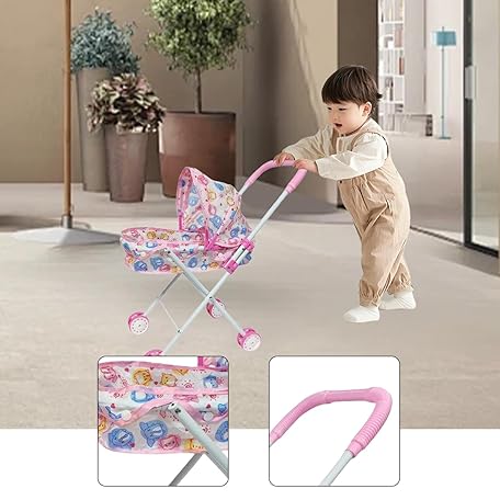 • MERIGLARE Doll Stroller Kids Stroller Toy Coordination Folding Educational Doll Baby Stroller Push Cart Toy Party Holiday Outdoor Home Red