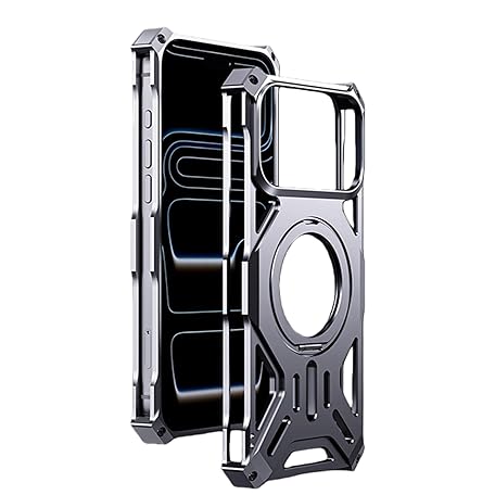 Metal Bumper Case for iPhone 17 Pro / 17 Pro Max Lightweight Aluminum Alloy Frame with 360° Rotating Ring Stand Heat Dissipation Open Design Shockproof Protective Cover (Silver,17 Pro Max)