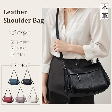 MFFOR ショルダーバッグ 本革 レディース 2way 斜め掛けバッグ ハンドバッグ 斜めがけ 肩がけ 手提げ ファスナーポケット付き 軽量 小さめ おしゃれ 大容量 柔らかい シンプル カジュアル 手持ち 人気 通勤