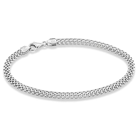 Miabella 925スターリングシルバー イタリア製 4mm メッシュリンクチェーンブレスレット 女性用 イタリア製, 7.5 inch, スターリングシルバー。, 宝石なし