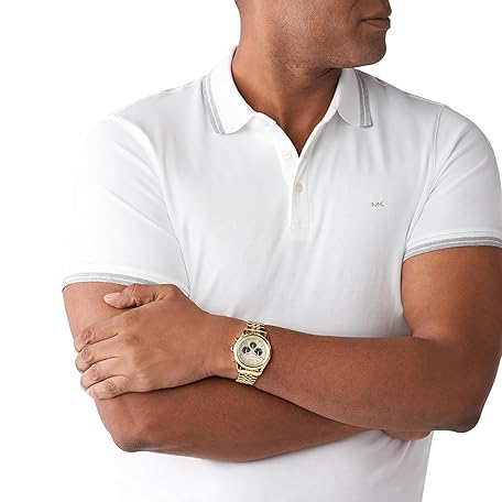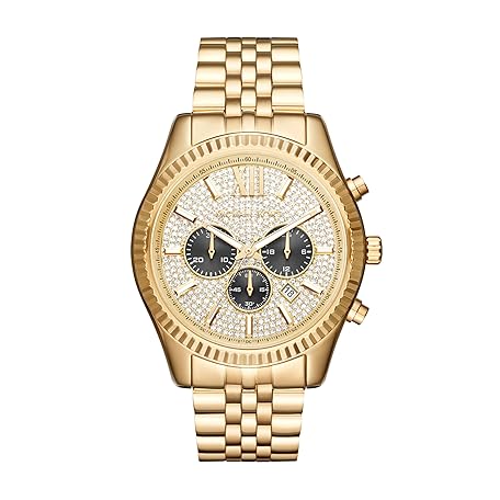 Michael Kors レキシントン クロノグラフ ステンレススチール 腕時計 ゴールドトーン、パヴェダイヤル付き。