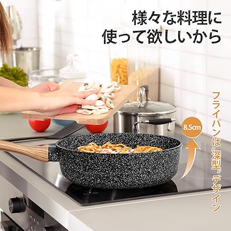 Thông tin sản phẩm MICHELANGELO Michelangelo Frying Pan, Deep, 11.0 inches (28 cm), Induction Compatible, Deep Design, Non-Stick, Marble Coat, Easy Care, Compatible with All Heat Sources, Black