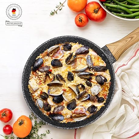Thương hiệu Michelangelo là cái tên nổi tiếng được rất nhiều khách hàng trên thế giới chọn lựa. Với kiểu dáng đẹp mắt, sang trọng, sản phẩm MICHELANGELO Michelangelo Frying Pan, Deep, 11.0 inches (28 cm), Induction Compatible, Deep Design, Non-Stick, Marble Coat, Easy Care, Compatible with All Heat Sources, Black là sự lựa chọn hoàn hảo nếu bạn đang tìm mua một món cho riêng mình.