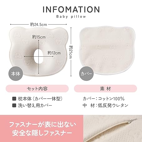 Thông tin sản phẩm [Midwife's Supervision] Baby Pillow, Pillow, Anti-Cliff, Baby Pillow, Includes Sub-Cover, Newborn, Baby Products, Prevents Tossing and Turning, Cushion, Prejour (Kuma Chan)