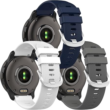 Miimall シリコンバンド 3本パック Garmin Vivoactive 6/5/3、Forerunner 55/165/570 42mm、Venu/Venu Sq/2 Plus用、20mm薄型ブレスレットスポーツストラップ Vivomoveスポーツ/トレンド、アプローチS12/S50/S42/S44用 レディース メンズ