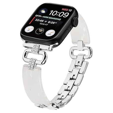 Miimall (マイモール) ラグジュアリー キラキラバンド Apple Watch 49/46/45/44/42/41/40/38mm Ultra 2/Ultra/SE 2/SE Series 10/9/8/7/6/5/4/3/2/1用 軽量 調節可能 樹脂ブレスレット メタルバンド付き iWatch用 レディース