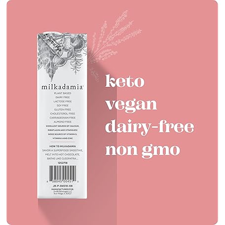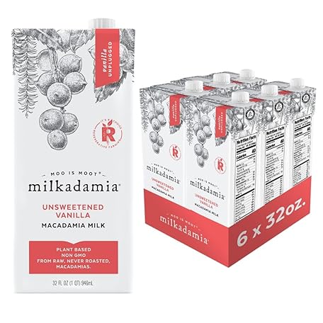 Milkadamia Unsweetened Vanilla, Vegan and Keto-Friendly Macadamia Milk (177422), 32 Fl Oz (Pack of 6)