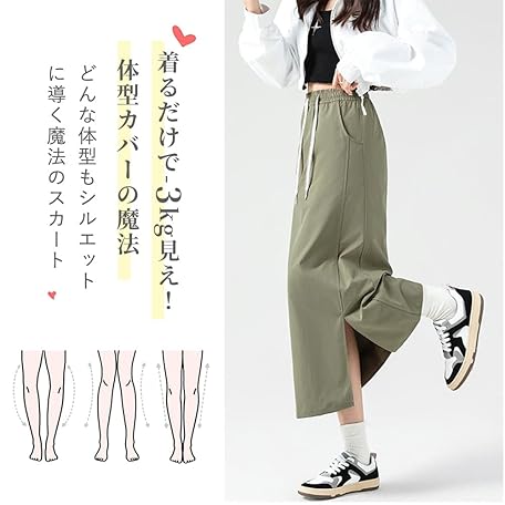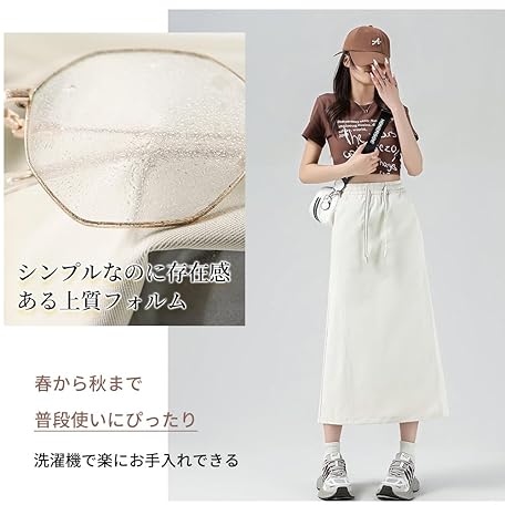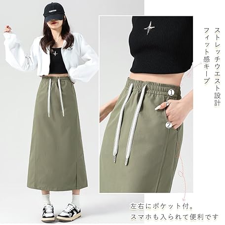 Minax Women's Skirt, Cargo Skirt, A-line, Body Cover, Long, Elastic Waist, Plain, Beautiful Legs, Slimming, With Pockets, For Going Out, Summer, Spring