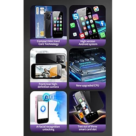Mini Phone 4G Smartphone, 3 inch Android, Dual SIM, Face Recognition, GPS, OTC, Google Play Unlock Phone 3GB+64GB (Black)