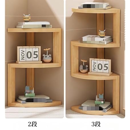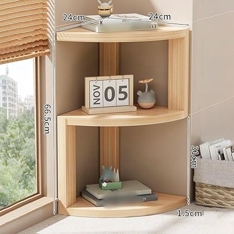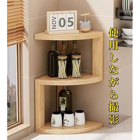 Thông tin sản phẩm Mirakasa Corner Rack, Open Shelf, Small Storage Rack, Corner Shelf, Round Corner, Tabletop Shelf, 2 Levels, 3 Tiers, Wooden, Load Capacity, Japanese, Simple, Durable, Multi-purpose, Interior