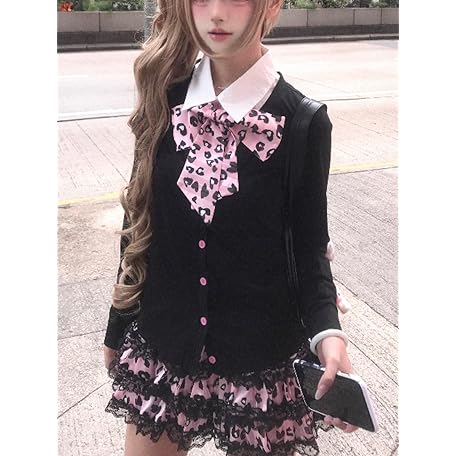 • Misswddd Mine Type T-Shirt Skirt Dress, 2-Piece Set, Women's, Layered, Long Sleeve, Bowknot, Lace, Leopard Print, Ribbon Included, Subcal Style, Punk Style, Gothic Lolita Cute, Shibia, Princess Style
