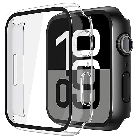Misxi 2パック 強化ガラスケース Apple Watch Series 10 (2024) 46mm対応 ハードPCスクリーンプロテクター 超薄型軽量 傷防止 カバー iWatch 用 ブラック 1個 + 透明1枚