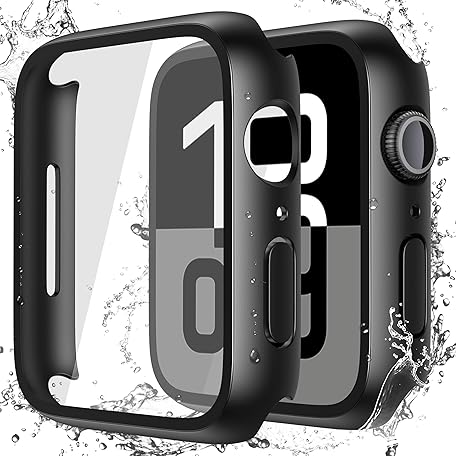 Misxi [2-Pack] Waterproof Hard Case with Tempered Glass for Apple Watch Series 10 (2024) 46mm Ultra Thin Drop Proof Tough Protective Cover for iWatch Screen Protector Matte Black