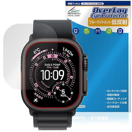 Miyabix Apple Watch Ultra 3 1.9 inches (49 mm), Protective Film, Blue Light Cut, Low Reflection, Gentle on Eyes, Made in Japan