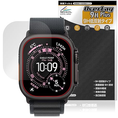 Miyabix Apple Watch Ultra 3 1.9 inches (49 mm), Protective Film, High Hardness, 9H, Low Reflection, Made of PET, Equivalent to Tempered Glass, Made in Japan