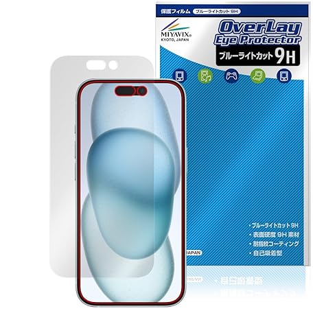 Miyabix iPhone 15 Compatible Protective Film, 9H, Blue Light Cut, PET, Glass Strength, 9H Material, Made in Japan