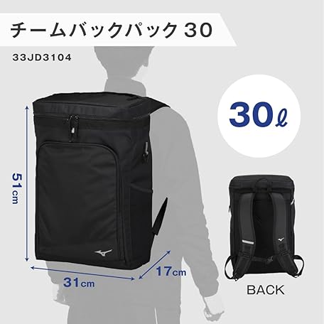 Thông tin sản phẩm MIZUNO(ミズノ) 33JD3104 Team Backpack, 30 Square, Large Capacity, For Sports, Unisex, Club Activities, School Commutes, Shoe Storage, PC Pocket, Retroreflective, Black, Black