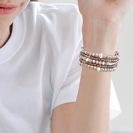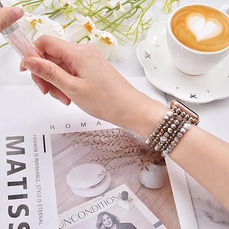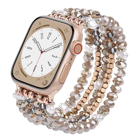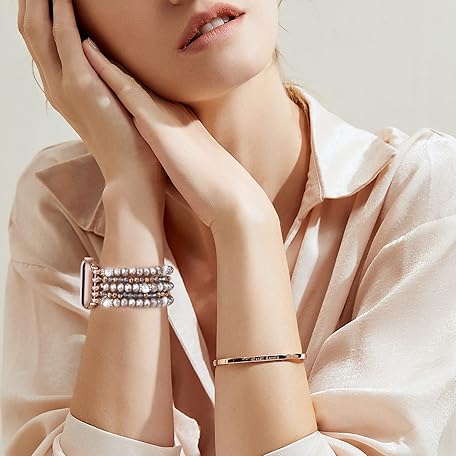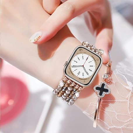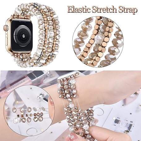 MOFREE Beaded Bracelet Apple Watch Band 38mm 40mm 41mm 42mm 44mm 45mm Women Fashion Handmade Elastic Stretch Strap for iWatch Series 8/7/SE/6/5/4/3/2/1