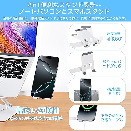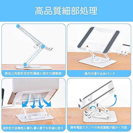 Thông tin sản phẩm MOHOPE Laptop Stand with Smartphone Stand, Rotating 360°, Foldable, Anti-Slip, Angle, Stepless Height, Ergonomics, Improves Posture, Lower Back Pain, Improves Stoops, Heat Dissipation, Load Capacity