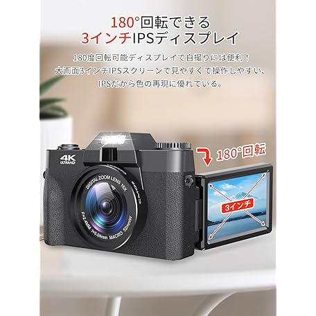Sản phẩm Moledro Digital Camera, 4K Digital Camera, Wifi Transfer Function, 48 Megapixels, 180 Degree Rotatable Display, 32 GB Micro SD Card Included, 16x Digital Zoom, Autofocus Function, Webcam, HDMI Output, đang được bán với giá ưu đãi là $65.7706 tại nước Nhật.