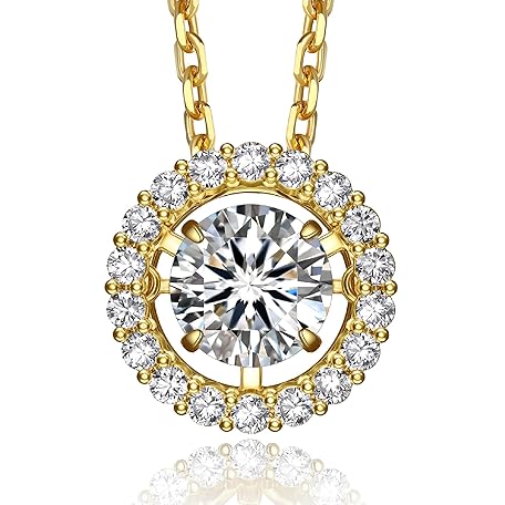 MomentWish Women's Dancing Stone Necklace, 0.5 - 1 Carat Moissanite Necklace, Dangling, Pendant, Silver 925 Chain, Gift Box Included, Popular Gift for Women, Sterling Silver, Moissanite