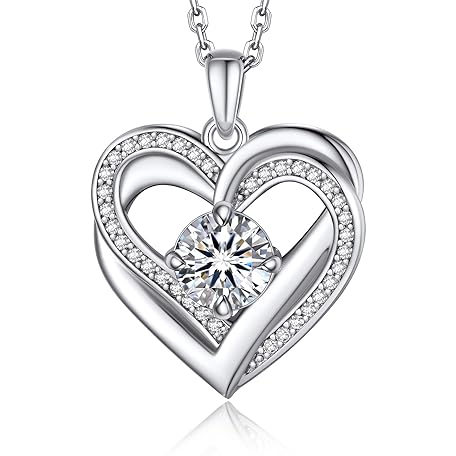 MomentWish Women's Heart Necklace, 1 Carat, Moissanite Necklace, Present for Women, Popular 925 Silver, Pendant Accessory Necklace, Popular Brand, Wedding Anniversary, Gift