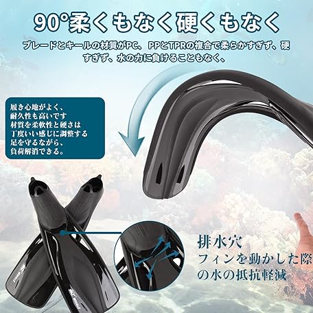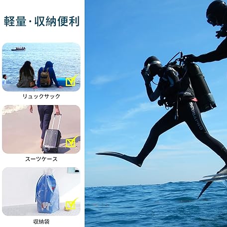 • MORGEN SKY ダイビング フィン シュノーケル あしひれ 足ヒレ フルフット ゴム 軽量 収納便利 排水穴 滑り止め FN600