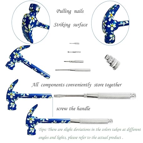 Sản phẩm Multifunctional 6 in 1 Floral Hammer and Screwdriver Tool Multi Tool Hammer Camping Hammer Nail Hammer Handy Hammer Tack Hammer Hammer Tool Small Hammer for Women (Blue) đang được bán với giá ưu đãi là $30.193 tại nước Nhật.