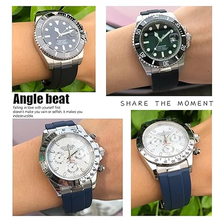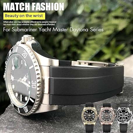 MURVE Metal Link Rubber Watch Band Curved End 20mm Sport Strap Rolex Daytona GMT Watch Yacht Master Submarina Fashion Green Strap