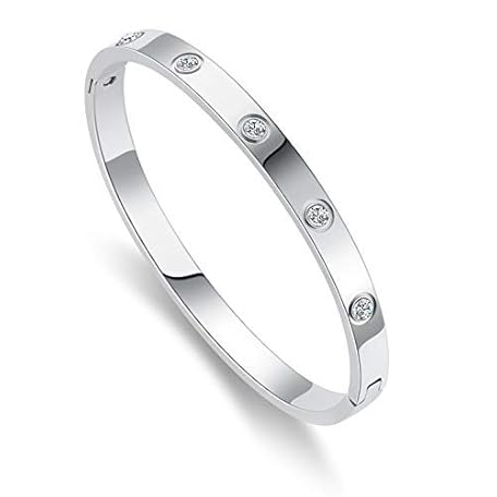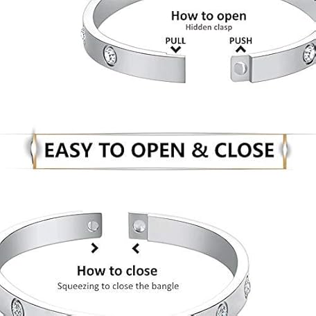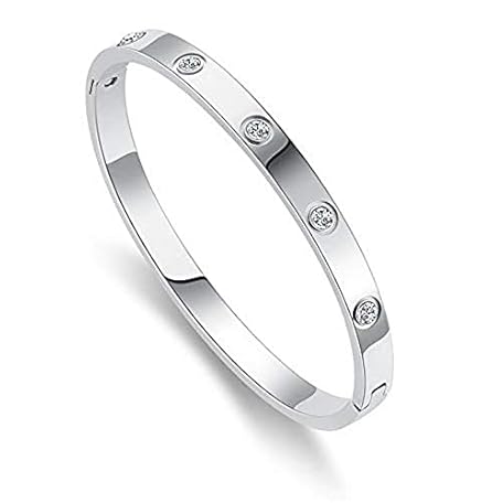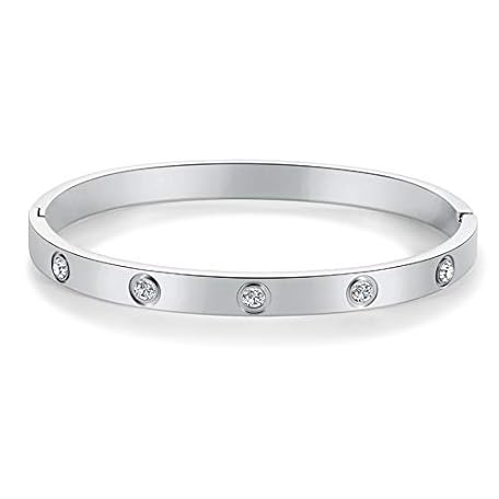 Thông tin sản phẩm My Daily Styles Stainless Steel Womens Hinged Cubic Zirconia Bangle Bracelet, Size 7.5", Silver, Stone Stainless Steel Metal, Cubic Zirconia