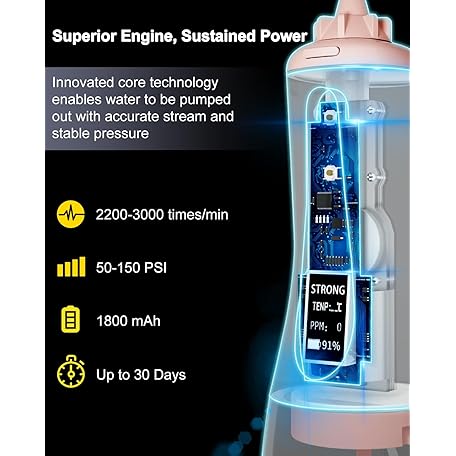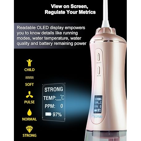 • MySmile LP221 衛生管理機能付き コードレス式ウォーターフロッサー 大容量335ml 口腔洗浄器 携帯用OLEDディスプレイ 4モード8ノズル 収納ポーチ付属 ホームおよび旅行用 (ローズゴールド)