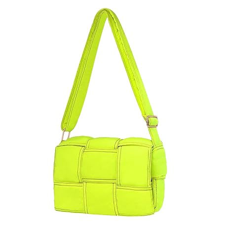 NAARIIAN Puffer Crossbody Bag, Lightweight Puffy Shoulder Bag with Adjustable Straps, Quilted Woven Perhobo Bag, neon-yellow, M