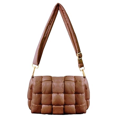 NAARIIAN Puffer Woven Bag Crossbody Purse Women Padded Cassette Shoulder Bag Trendy Handbag Messenger, Braun, M