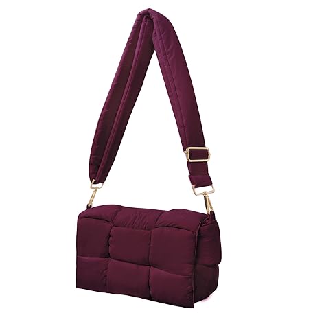 NAARIIAN Women's Shoulder Bag, Lightweight Small Puffer Purse, Waterproof, Hand-Woven Bulge Bag, Crossbody Handbag, red, (wine red), S