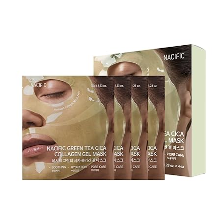 NACIFIC Green Teasica Collagen Gel Mask Pack, 1.2 oz (35 g) (Pack of 4), Skin Soothing, Oil and Moisture Balance, Elastic Care