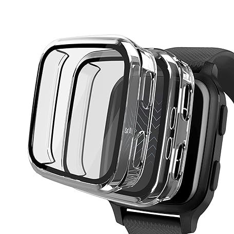 NAHAI 2 Pack Hard PC Case for Garmin Venu Sq Screen Protector, Built-in 9H Tempered Glass Full Cover Bumper Anti-Scratch Shell for Garmin Venu Sq Music Smart Watch Clear/Clear