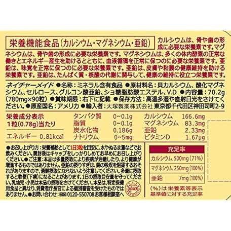 Sản phẩm NATUREMADE Otsuka Pharmaceutical Calcium, Magnesium, Zinc, 90 Tablets, 30 Day Supply đang được bán với giá ưu đãi là $5.5917 tại nước Nhật.