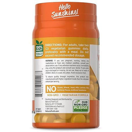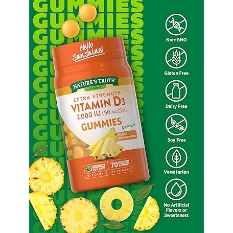 Nature's Truth Vitamin D3 Gummies Vegetarian, Non-GMO, Gluten Free, Pineapple Flavor, 70 Count