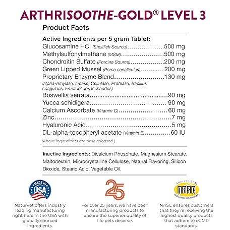 NaturVet ARTHRISOOTHE-GOLD Healthy Hip Joint Flexibility For Dogs 240 Tablets