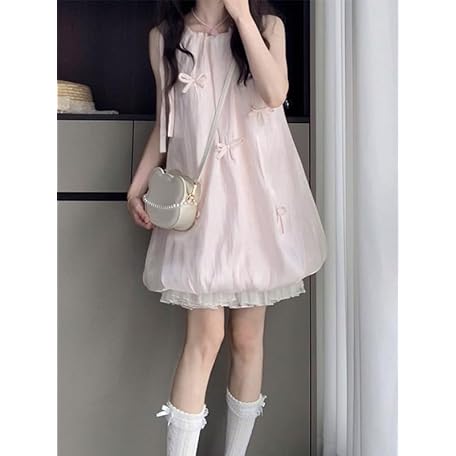 • Neat and Clean Dress, Women's, Cute, Pink, Bowknot, Flower Bract Silhouette, Sleeveless, Girly, Princess Style, Summer Clothing, Lolita Style, Flared Skirt, Outing, Everyday Wear, Commuting to Work or
