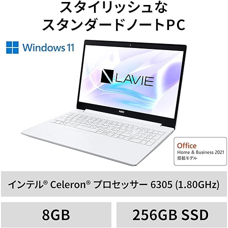 • NEC LAVIE N15S 15.6 Inch Laptop with Intel Celeron 8GB 256GB SSD Office Warm White Microsoft Office Home & Business 2021 DVD