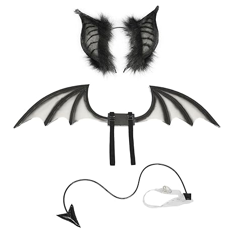 [NEKO MENA] サキュバス コスプレ3点セット ふわふわコウモリ耳&翼&しっぽ ハロウィン パーティー用 吸血鬼テーマの女性用変身セット (ブラック) [並行輸入品]