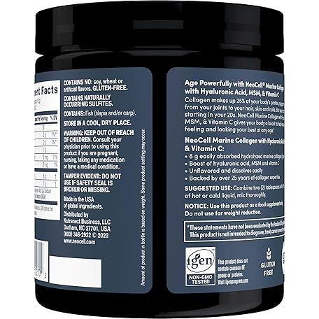 Thông tin sản phẩm NeoCell, Hyaluronic Acid, MSM (Methylsulphonylmethane), Vitamin C, Plain, 7.1 oz (200 g)