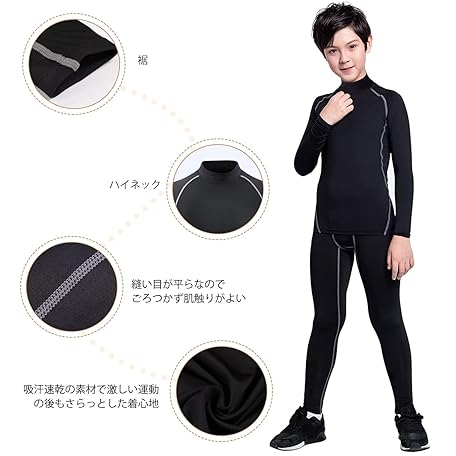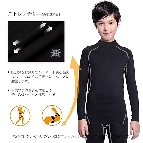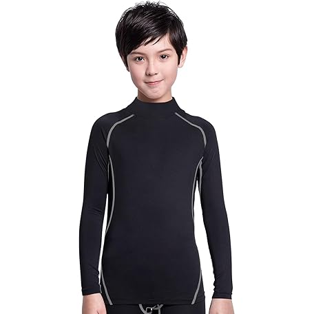 Nesseo Kids' Sports Innerwear, Long Sleeve Shirt, High Neck, Compression Wear, Underwear, For Boys And Girls, Rash Guard, Soccer, Baseball, Sweat Absorbent, Quick Drying, Compression Protection