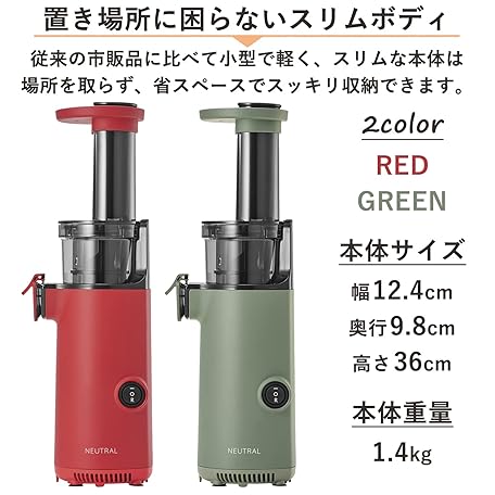 Thông tin sản phẩm NEUTRAL NR-K-BD4-RD Mini Slow Juicer, Squeezing Scum Separation, Small Juicer, Slow Speed, Not Easy to Oxidize, Fresh Juice, Red