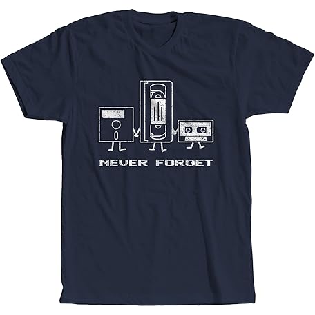 Never ForgetフロッピーディスクVHSカセットテープレトロヴィンテージオールドスクールTシャツ, ネイビー, XX-Large