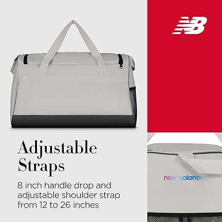 Thông tin sản phẩm New Balance Duffel Bag Medium Gym Bag Travel Bag with Carry Handle and Adjustable Shoulder Strap Light Grey, Light Grey, Duffel Bag, Medium Gym Bag Travel Luggage with Carry Handle and Adjustable